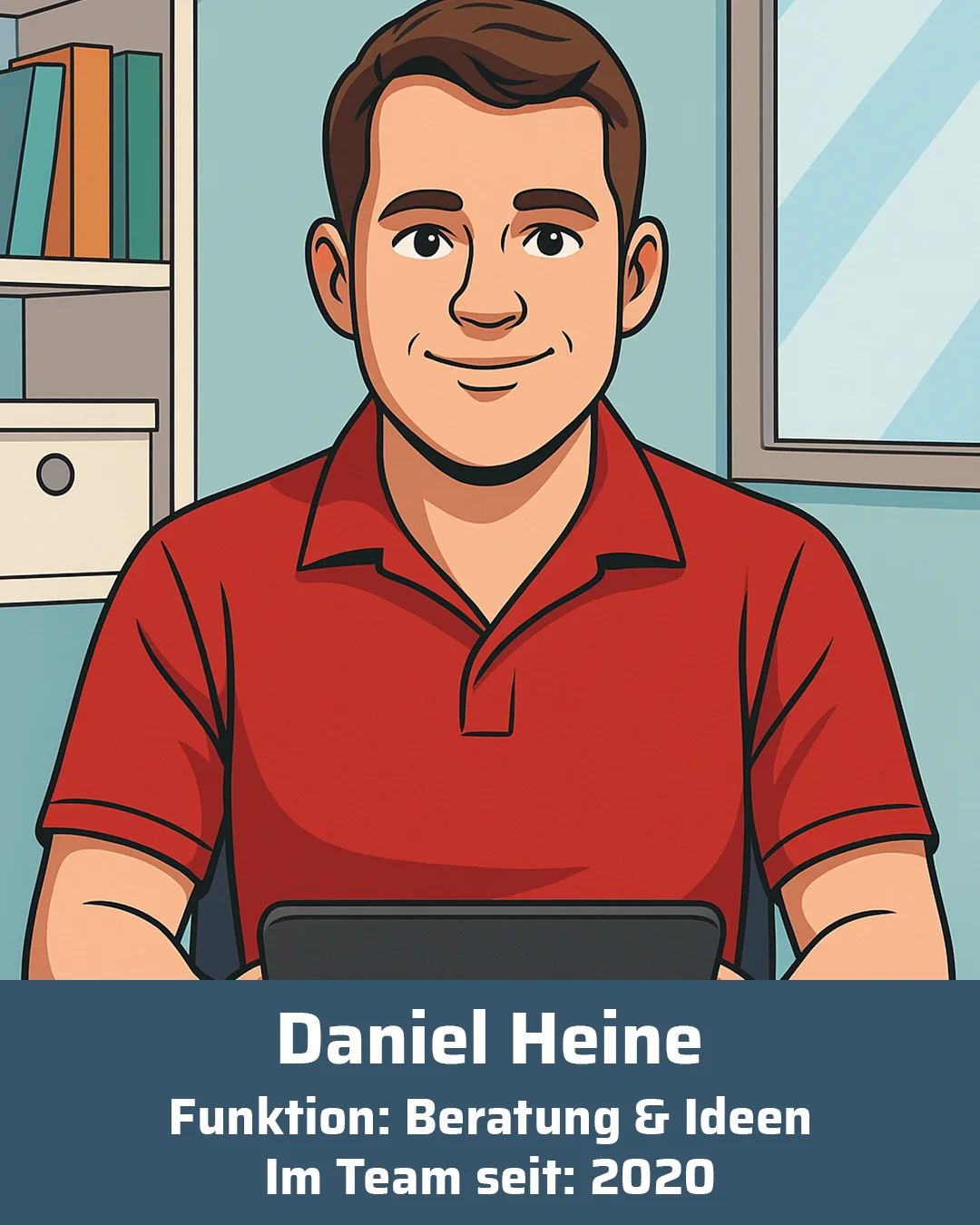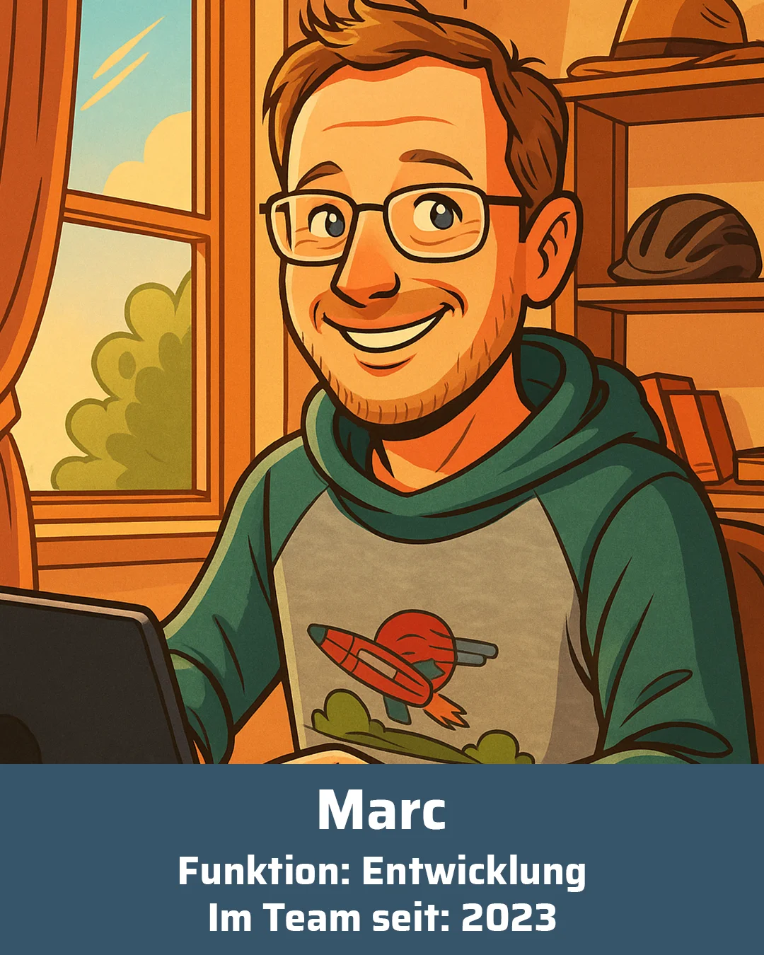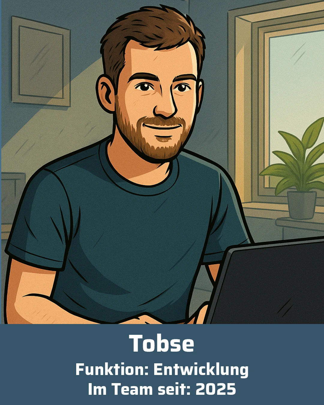 Mit viel Leidenschaft für sauberen Code sorgt er dafür, dass unsere App stabil läuft, neue Funktionen reibungslos integriert werden und Fehler schnell behoben sind. Wenn etwas technisch besonders knifflig wird – Tobse findet (fast immer) eine Lösung.